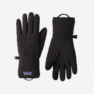 The fuzzy, looped texture of our ultra-comfortable Retro Pile Gloves traps your heat to keep your fingers and hands warm in a wide range of conditions. Soft and stuffable, they feature a cozy 100% recycled polyester double-sided solid fleece for insulation, all-day comfort and ease of wear - from running errands to running the trails. The fingers are made of 100% recycled polyester flat-face brushed-back fleece with mechanical stretch so your digits move naturally to allow maximum dexterity. For durability and an improved grip we added 100% recycled nylon palm overlays with a DWR (durable water repellent) finish to shed moisture and increase durability. Touch screen compatible panels on the thumbs and index fingers let you control your electronic devices without removing your gloves; elastic wrists with pull loops seal out the cold and make on/off simple.