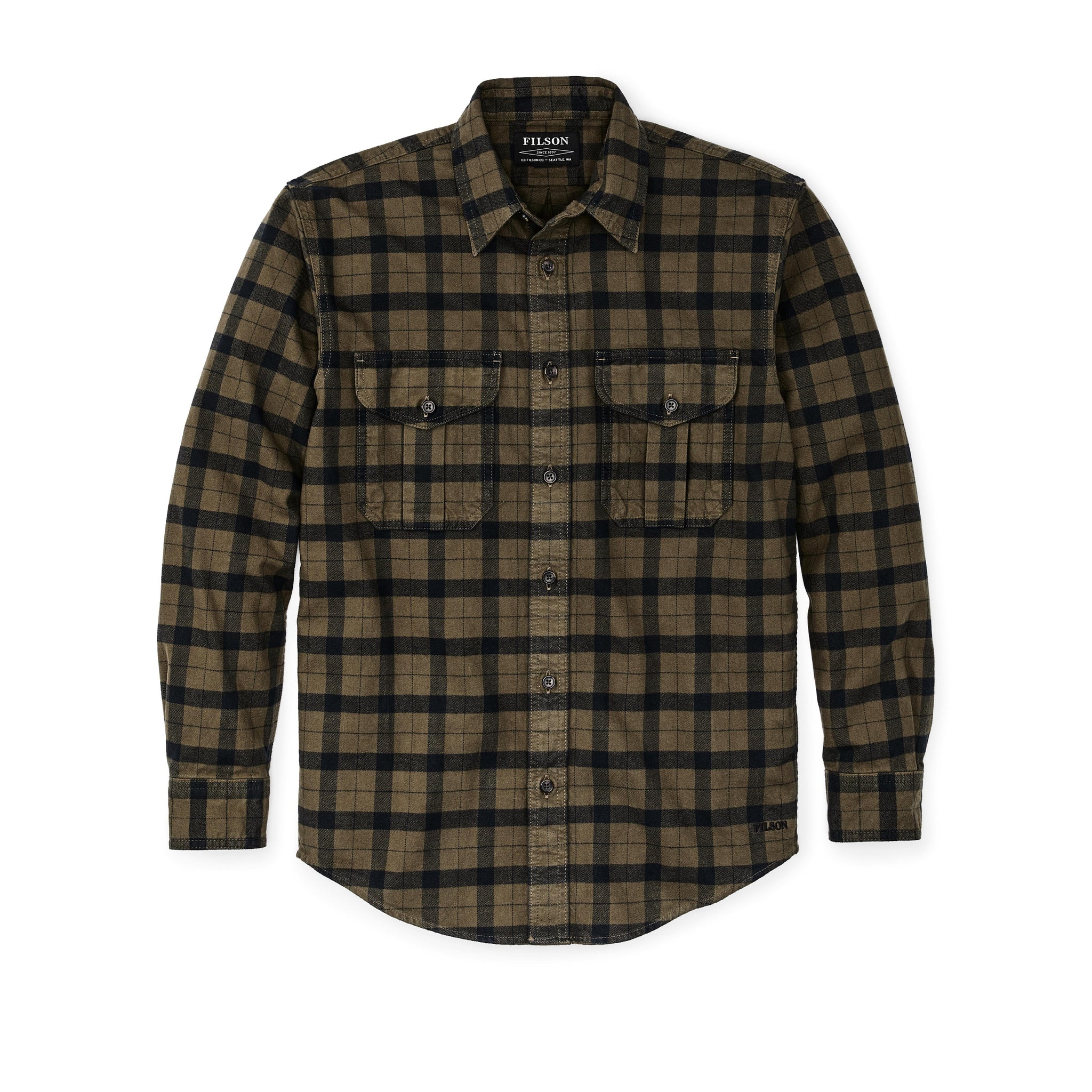 Our iconic flannel is brushed on both sides, adding a layer of softness and warmth that belies its thickness and weight. Ideal over a T-shirt in cool weather, or with a base layer and vest as the temperature drops. The dense, tight weave blocks chilly breezes, while adding a level of durability that’s unsurpassed. The pleated rear shoulders allow unrestricted ease of motion, whether you’re shouldering a shotgun, casting a fly or swinging an axe. Dual flapped chest pockets are gusset-expandable for bulkier items and secure with virtually unbreakable custom Filson buttons. Preshrunk.