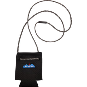Canned beverage insulator with rope neck cord to keep your drink at very close reach, folds flat for easy storage.