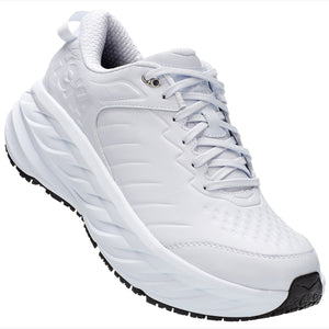 The Bondi SR takes the most cushioned shoe in the HOKA road-shoe lineup and reworks the silhouette to handle the demands of daily life. Updated with water-resistant leather, a slip-resistant outsole and EVA midsole to ensure all-day cushion, this workplace warrior features an ultra-grippy, full ground contact rubber that stands up to the demands of the service industry and medical field alike.