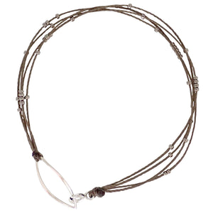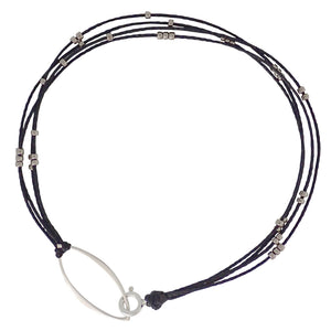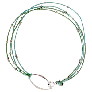 Delicate and sweet; strong and water friendly, the Radiance bracelet looks great alone or layered with bangles, cuffs or any other Bronwen bracelets. Tiny charlottes of 18k gold vermeil and sterling silver slide easily along super strong nylon thread giving it a hint of sparkle. Marquis shape clasp is interesting and functional. Measures 7". Made in USA.