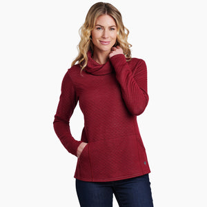 Embrace your inner warrior in the KÜHL ATHENA PULLOVER. Featuring luxurious mélange fabric, a rhombus pattern, and an oversized cowl neck, you'll want to wear this unique pullover every day. The relaxed fit and kangaroo hand warmer pocket create a cozy, comfortable feel. Princess lines, center back seam, and dropped curved back hem add stylish, flattering details. Perfect for après-ski, cozy up in the ATHENA PULLOVER on chilly days and frosty nights.
