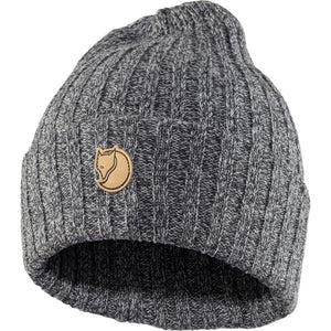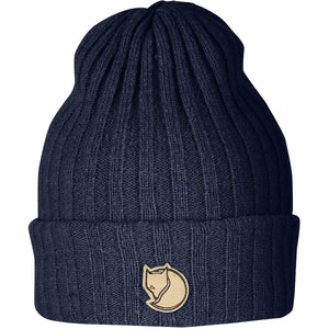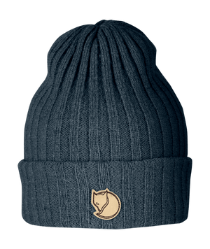 Double-knitted hat in wool that makes it both warm and durable. Double-fold at the bottom and ribbed for comfortable fit. Arctic fox on the forehead.