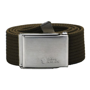 Canvas belt. Adjustable length and metal 'military' belt buckle.