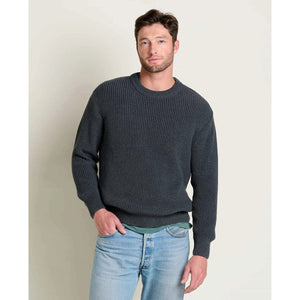 Made from 100% recycled materials, this easy-wearing sweater channels the time-tested quality of your grandpa’s favorite layer but with a softness that inspires cuddling.