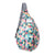 Lightweight sling pack with adjustable rope shoulder strap, two vertical zip compartments, two key or cell phone pockets, padded back with KAVU embroidery. Dimensions: 20" x 11". Fabric: 4oz polyester rip stop.